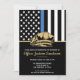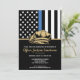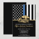 Cette conception comprend un drapeau de la force de police avec des bandes noires et blanches, ainsi qu'une fine bande bleue. Le badge de police et le texte doré se trouvent au-dessus de tous les détails de la fête pour la retraite de l'agent de la force de l'ordre, du shérif, du capitaine ou du chef en retraite.