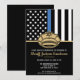Cette conception comprend un drapeau de la force de police avec des bandes noires et blanches, ainsi qu'une fine bande bleue. Le badge de police et le texte doré se trouvent au-dessus de tous les détails de la fête pour la retraite de l'agent de police, du shérif, du capitaine ou du chef en retraite.