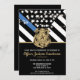 Cette conception comprend un drapeau de la police avec des rayures noires et blanches, ainsi qu'une fine bande bleue. L'insigne de police et le texte en or sont au-dessus de tous les détails du parti pour l'officier de l'application de la loi, le shérif, le capitaine ou les chefs du parti de retraite qui prend sa retraite.