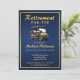 Faites une déclaration avec notre simple mais raffinée invitation à la retraite. Parfait pour les passionnés de golf qui font leurs adieux au monde des affaires, notre design allie harmonieusement classe et fantaisie. Les accents dorés complètent l'arrière - plan sophistiqué bleu foncé, tandis que le graphisme d'une voiturette de golf ajoute une touche ludique. Au verso, vous pouvez écrire des informations supplémentaires. Supprimez simplement le texte si vous ne le voulez pas. Tout le texte est facile à customiser.