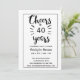 Une invitation à la retraite blanche et noire, qui dit bonjour au sommet, vous pourrez facilement personnaliser avec le nombre d'années nécessaires ainsi que les détails de la fête. L'arrière de ce invitation du parti de la retraite est en blanc. Veuillez voir des photos.