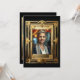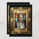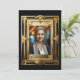 Un cadre doré élégant et audacieux semble briller et briller contre un arrière - plan noir qui a un modèle photo sur lui pour une photo de votre employé ou de votre cadre. Le dos a la même bordure dorée rétro avec des modèles noirs audacieux qui peuvent être personnalisés selon vos besoins. Ce design est adapté à un petit déjeuner d'adieu d'affaires, déjeuner ou dîner ou une fête de retraite.