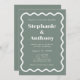 Invitation Retro 1950 Wavy Edge Sage Green Mariage