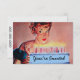 Invitations présentant une illustration vintage des années 1950 d'une jolie femme et un gâteau d'anniversaire. Customisez-les avec votre propre texte. Parfait pour une fête d'anniversaire pour une femme. Cool rétro !