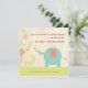 Rétro invitation unisexe doux de baby shower d'éléphant. Image d'un éléphant de bébé bleu avec de petits coeurs roses apparaissant de son tronc. L'arrière - plan chic minable crème avec le griffonnage fleurit aux nuances de finition bleu et rose avec un pâle - frontière verte de point de polka. Cette invitation carrée mignonne de baby shower a une conception simple et convient à un bébé ou à un bébé. Facilement personnalisable ainsi vous pouvez ajouter vos propres détails à l'avant et au dos. Éléments d'arrière - plan des papiers de ruelle de mûre.