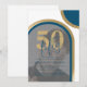 Invitation Retro Bleu Et Or 50e Photo Anniversaire