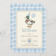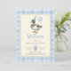 Célébrez la journée spéciale de votre petit avec cette charmante invitation de fête d'anniversaire "Lucky Duck"! Dotée d'une illustration fantaisiste d'un canard apper portant un casquette de fête et tenant un ballon bleu pastel, cette conception est encadrée par une bordure en plaid classique pour une touche d'élégance rétro.
