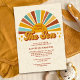 Cette invitation au baby shower amusante et élégante présente un soleil de sauce dessiné à la main dans des tons rétro de terre cuite, jaune or et aqua. La typographie de style vintage / Rétro dit, "Voici le Fils", un jeu de mots mignon qui est parfait pour un bébé garçon en chemin! Le dos contient une illustration de soleil correspondant. L'avant et l'arrière contiennent un regard texturé sur un arrière - plan de couleur ivoire. *Illustration originale par Orabella Prints.