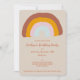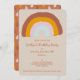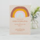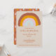 Jetez une fête d'anniversaire ou une autre fête spéciale avec ces invitations faciles à customiser de fête. Elles présentent une illustration de style gribouillage d'un arc-en-ciel aux couleurs chaudes et rétro de rouille rouge, d'orange doré, de rose pâle et de bleu clair contre un arrière - plan de couleur bronze avec une empreinte coordonnée en goutte de fer à l'envers.