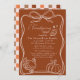 Profitez du charme d'un séjour nostalgique avec notre Retro Coquette Thanksgiving Dinner Invitation! Ce design numérique présente un délicieux mélange d'illustrations fantaisistes - une dinde gracieuse, une tranche de tarte citrouille et des étoiles rétro - le tout encadré par un élégant arc coquette. Parfait pour accueillir votre réunion d'Amical ou dîner intime en famille, ce modèle d'invitation 5x7 donne un ton de nostalgie chaleureuse et fantaisiste. L'arrière est doté d'un motif rétro à damiers complémentaire pour une sensation professionnelle et finie.