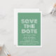 Annonce rétro de mise en mémoire de date en vert et blanc avec un design de typographie moderne funky. Cette invitation de mise en mémoire de date tendance et élégante est facile à personnaliser avec vos détails de mariage. Pour plus d'options de personnalisation, cliquez sur le bouton Personnaliser.