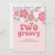 Deux Groovy ! Invitation d'anniversaire 2ème rétro inspirée avec des polices et des couleurs des années 70, Fleur en rose et violet vifs.
