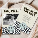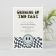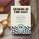 Invitation d'anniversaire rétro cool et amusante pour les enfants thème 2ème anniversaire avec des styles rétro cool avec motif à carreaux et visage heureuxLe texte dit "Grandir Deux Trop Vite". Parfait pour l'anniversaire d'un garçon.