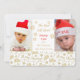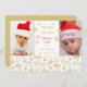 Une bordure inférieure de mitaines d'or et de texte "Joyeux Noël" salle de feuilles motifs pour deux de vos propres photos sur cette jolie carte de Noël plate "Meilleur cadeau pour toujours". Le centre est blanc pour votre texte personnalisé en or et en rouge, et quelques flocons d'or qui dérivent. L'arrière de la carte est en or massif assorti pour que vous puissiez écrire un message à la main, si vous le souhaitez.