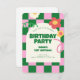 Invitation Retro Green Pink Checker Motif fête d'anniversaire