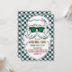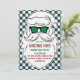 Invitation Retro Green Pink Checkered Santa Claus Christmas