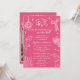 The soft pink background is accented with white doodle details including a disco ball, graduation cap, diploma, bow, books, florals, and celebratory icons — creating a fun, confident, and feminine aesthetic perfect for high school, college, or university graduates. The front layout highlights all party details in a clean, easy-to-read format, making it both stylish and practical.