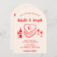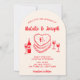 Invitation Retro Hand Drawn Red Cake Modern Arched Wedding