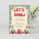 Amusez-vous avec cette invitation d'anniversaire de bowling inspirée par le rétro ! Ce design dynamique et ludique présente une typographie de style vintage, des épingles de bowling et des boules de bowling colorées, parfaites pour les enfants, les ados ou même les adultes qui aiment le bowling. Que vous organisiez une soirée de bowling ou une soirée amusante avec des amis, cette invitation facilite la personnalisation des détails de votre soirée. Idéal pour les 10e anniversaires, les fêtes pour enfants, les fêtes pour ados ou encore les soirées de bowling pour adultes, cette invitation élégante donne le ton parfait pour un événement mémorable. Customisez simplement le nom, la date et l'emplacement, et vous êtes prêt à rouler!