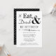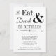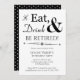 Ça va être une fête de retraite, alors mettez la scène avec cette invitation funky rétro noir et blanc Manger, Boire et Retirer !