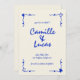 Capturez l'essence du charme vintage et de la fantaisie avec notre rétro manuscrit Whimsical Blue Save the Dates Invitation. Cette invitation est un délicieux mélange d'élégance d'antan et de design ludique, parfait pour les couples à la recherche d'une façon unique et mémorable d'annoncer leur date mariage. Les éléments manuscrits apportent une touche personnelle à l'invitation, évoquant un sentiment de chaleur et d'authenticité. La palette de couleurs bleues fantaisie insuffle au design un sentiment de nostalgie et de fantaisie, donnant le ton pour une fête amusante et inoubliable. Que vous planifiez un mariage à la plage, une aventure dans le jardin ou une fête rustique, cette invitation saura enchanter vos invités et laisser une impression durable. Laissez éclater votre histoire d'amour avec cette invitation fantaisiste qui promet de capturer les coeurs et l'imagination à la fois.