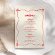 Invitation Retro manuscrit Whimsical Red Menu Mariage