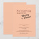 This retro modern wedding invitation features a warm coral peach background with bold, playful typography. The design blends a funky vintage style with a clean modern layout. It creates a joyful and stylish first impression for your wedding.