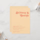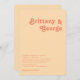 Ce rétro moderne | orange crème arrondi faire-part de mariage d'angle est parfait pour votre simple vintage, coloré boho tropical mariage d'été. Sa police bohème unique du milieu du siècle donne à ce design une ambiance minimaliste super hippie classique. Si vous cherchez un design qui présente des couleurs vives et audacieuses pour votre mariage de plage créatif des années 70, ce produit, et sa collection de mariages coordonnés, sont précisément ce que vous cherchez. N'hésitez pas à modifier la couleur pour ajouter vos propres illustrations, graphiques ou photos. Si vous avez des questions sur la conception de ce produit, n'hésitez pas à nous contacter !