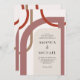 Une touche moderne d'un style art déco glamour ou de jours passés, cette invitation de mariage colorée présente des formes géométriques courbes entrelacées autour de la mise en page du texte de l'invitation. Les couleurs comprennent des nuances neutres de terre cuite, de rouille et de beige avec une forme beige ivoire neutre encadrant votre texte. Les résultats sont uniques et artistiques avec un attrait rétro.