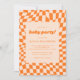 Invitation Retro Orange Abstrait Checkerboard Baby Party