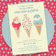 Nouveau pour l'été 2024. Notre crème glacée, Vous hurlez Nous hurlons Tous Joyeux 60e anniversaire ! Suivie de trois cônes de crème glacée couleur aquarelle rétro avec des glaces patriotiques rouges, blanches et bleues et des arrosées.