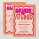 Célébrez la future mariée avec ces invitations tendance et uniques. Cette invitation rétro sur le thème "ivre d'amour" de couleur orange pêche est personnalisable avec vos propres détails. Choisissez de les faire imprimer, recevez-les en téléchargement numérique ou les deux !