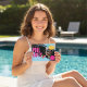 Dive into fun with this vibrant pool party birthday invitation! Featuring a retro aesthetic with a cool blue splash and bold pink lettering, this design is perfect for celebrating a special birthday bash. A stylish photo of a woman in sunglasses sets the mood, surrounded by playful pool float graphics. The back of the invitation includes a convenient QR code for easy RSVPs, making event planning a breeze. Make a splash and invite your guests to an unforgettable poolside celebration!