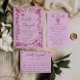 Invitation Retro Pink Raspberry Drawn Floral Garden Wedding
