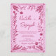 Invitation Retro Pink Raspberry QR Code Drawn Floral Wedding