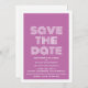 Annonce rétro d'enregistrement de la date dans un fuchsia radieux et blanc avec un design typographique moderne funky. Cette invitation tendance et élégante pour enregistrer la date est facile à personnaliser avec vos informations de mariage. Pour plus d'options de personnalisation, cliquez sur le bouton Personnaliser.