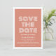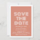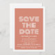 Annonce rétro de sauvegarde de la date en orange et blanc avec un design de typographie moderne funky. Cette invitation tendance et élégante pour sauver la date est facile à personnaliser avec vos détails de mariage. Pour plus d'options de personnalisation, cliquez sur le bouton Personnaliser.
