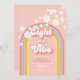 Huit est une Vibe ! Retro inspiré invitation 8ème anniversaire avec des polices et des couleurs style années 70, arc-en-ciel et marguerites en rose