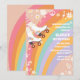 Celebrate in groovy style with this retro rainbow roller skating birthday invitation! Featuring vibrant pastel stripes, peace signs, flowers, and playful roller skates, this design captures the fun and carefree spirit of the 70s. Perfect for kids parties, boho celebrations, or hippie-themed events, it sets the tone for a colorful and joyful gathering. Personalize with your party details and make your celebration unforgettable.