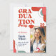 Chantez votre enfant de fleurs intérieures et jetez un bassin super pour célébrer votre diplôme! Cette invitation d'inspiration rétro comprend un espace photo d'angle arrondi, parfait pour présenter vos photos de seniors. Avec une palette éclatante de couleurs rouge, beige et les années 70, des polices super et une illustration de marguerite ludique, cette invitation donnera certainement le ton à une fête de remise de diplômes lointaine.