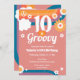 Cute girly retro 10 est des invitations d'anniversaire super. Arc-en-ciel rétro populaire, étoiles, fleurs, et police de style années 60. Disponible en téléchargement numérique imprimable. Idéal pour toute saison. Couleurs pastel roses rétro.