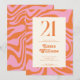 Retro les années 70 Invitation Super du 21e anniversaire. Arrière - plan motif tourbillon coloré. Personnalisez tout le texte dans ce design pour des invitations personnalisées à 21e anniversaire.