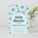 Celebrate your little one in sweet retro style with this groovy blue daisy baby shower invitation. Featuring a soft pastel blue background with muted vintage floral accents, this design blends 70s-inspired charm with a clean, modern layout.