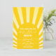 Célébrez la future mariée avec notre Invitation de la douche nuptiale Voici le Soleil. Dotée d'un design éclatant et d'une typographie joyeuse, cette invitation capte l'essence de la joie et de l'anticipation alors que la mariée entreprend son voyage vers la félicité mariée. Que vous planifiez une aventure ensoleillée en plein air ou une réunion intérieure confortable, notre invitation promet une douche nuptiale radieuse et mémorable remplie d'amour et de rire. Notre Invitation de la douche nuptiale présente un motif de soleil captivant associé à une typographie lumineuse et joyeuse qui respire la chaleur et le bonheur. Le design dynamique donne le ton d'un événement festif et festif, invitant les invités à se prélasser dans la lueur du bonheur et de l'excitation de la future mariée. Faites de l'invitation une invitation personnalisée en fonction de la personnalité de la mariée et de vos plans de douches nuptiales en la customisant avec des détails personnalisés tels que la date, l'heure et le lieu de l'événement. Que vous soyez l'hôte d'un brunch sous le soleil du matin ou d'une soirée au coucher du soleil, notre invitation vous permet de customiser les informations qui correspondent à votre vision de la douche nuptiale, en vous assurant que les invités ont tous les détails essentiels dont ils ont besoin pour assister. Célébrez la future mariée avec notre Invitation de la douche nuptiale Voici le Soleil. Dotée d'un design éclatant et de détails personnalisables, cette invitation promet une fête éclatante et joyeuse pour tous. Choisissez entre des options numériques ou imprimées pour une distribution facile. Achetez maintenant et faites de la douche nuptiale un événement inoubliable!