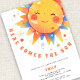 Retro Voici Le Baby shower Du Fils. Disponible numériquement et imprimé. Un joli soleil coloré et une ambiance les années 70. Modifiez le texte et les couleurs arrière - plans si vous le souhaitez via l'option Modifier plus et personnalisez le texte dans vos propres détails.
