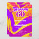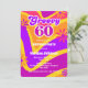 Retro inspiré Super invitation 60ème anniversaire avec des vagues rétro motif, marguerites et polices et couleurs boho.