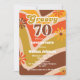 Retro inspiré Super invitation 70ème anniversaire avec des vagues rétro motif, marguerites et polices et couleurs boho.