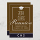 Envoyez à vos camarades de classe de 20e classe notre invitation de carte à plat moderne. Cet élégant modèle design dispose d'un marron et d'un arrière - plan marron avec une typographie blanche qui dit "Réunion de classe 20e" avec votre nom d'école et l'année à personnaliser Ci-dessous est le monogramme de votre école. Le verso de la carte contient plus de détails de célébration pour vous permettre de customiser. Conçu par un artiste de renommée mondiale ©Tim Coffey.