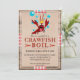 Le roi de l'écrevisse est parfait pour votre prochaine écrevisse, crevette, homard ou bouillabaisse de fruits de mer en général ! Il est prêt à faire la fête avec un fond rustique en bois et toile de jute, et un texte personnalisable pour votre événement. Préparez le maïs cajun et les pommes de terre, détendez-vous et profitez de la fête avec style avec votre famille et vos amis.
