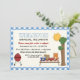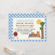 BBQ cuisine pique-nique famille invitation annuelle réunion avec en vichy bleu ou bordure vichy avec une table whimsical avec à damiers nappe et hamburgers, salade de pommes de terre, pastèque et jus d'orange sur elle, un grill barbecue gaz rouge, un arbre et le soleil. Idéal pour un pique-nique d'été. Éléments d'art d'Alice Smith.